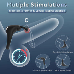 This vibrating rabbit ring comes with a remote control! There are 10 different modes to choose from, so pass the remote to your partner and be surprised... And don't worry about heat of the moment distractions, the remote is easy to use with only two simple buttons. This ring is also designed so that it can be used for multiple stimulation's as seen in the product image, including testicle, anal, and taint stimulation. Who knew a cock ring could be so thrilling!
